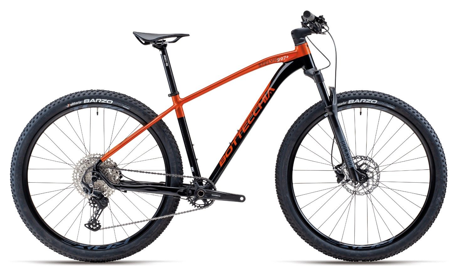 Stelvio 297+, la front in alluminio dedicata agli amanti della mountain bike. Adatta anche ai percorsi più impegnativi, questa MTB front suspended permette di affrontare agilmente track diversi, anche dai biker meno esperti.Telaio in alluminio 6061 double butted, forcellino 3D con post mount integrato e forcella RS Silver tk air con escursione da 100 mm.