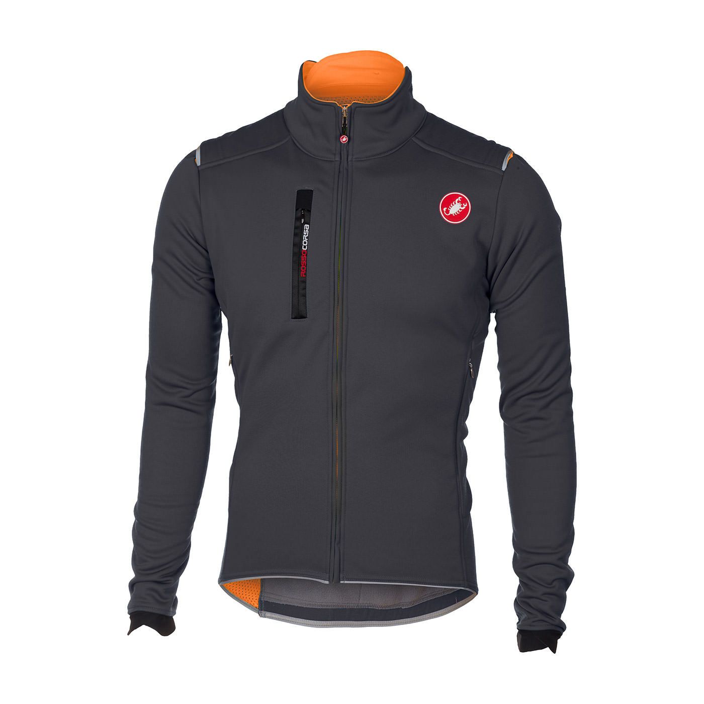 Tutto quello che fa Castelli, lo fa per farti andare più veloce. Non l'abbiamo resa aerodinamica, quindi non ti aiuterà a vincere le gare di allenamento con il club a gennaio. Quello che abbiamo fatto è stato integrare ogni comfort possibile, per aiutarti ad allenarti il più possibile in inverno. Ha un taglio un po' più ampio dei nostri capi da gara. La struttura interamente in Windstopper® tiene fuori il freddo e offre la miglior traspirabilità possibile, tuttavia se te ne servisse ancora di più, abbiamo aggiunto delle cerniere per la ventilazione sul torace. Abbiamo introdotto nuove chiusure su collo e polsi per migliorare questi punti critici, e ci sono tre grandi tasche e una tasca con cerniera sul davanti.