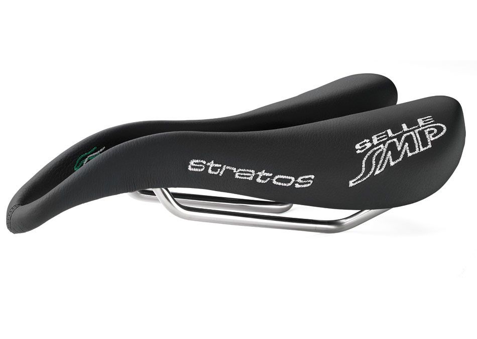 Il modello Stratos è la sella ideale sia per una formazione intensiva sia per il tempo libero in bicicletta. Essa utilizza la struttura del modello Composit unito con imbottitura media. È coperto in Vera Pelle per le versioni nero e microfibra per le versioni colorate. Ha ottime caratteristiche "all-around" ed è particolarmente adatto per chi ha il bacino medoi. Le caratteristiche brevettate di Selle SMP quali il canale centrale completamente libero, l'aquila-originale becco del naso e della porzione posteriore, conferiscono a questi modelli un interessante tocco di aerodinamicità. Adatto a persone con bacino stretto e medio.